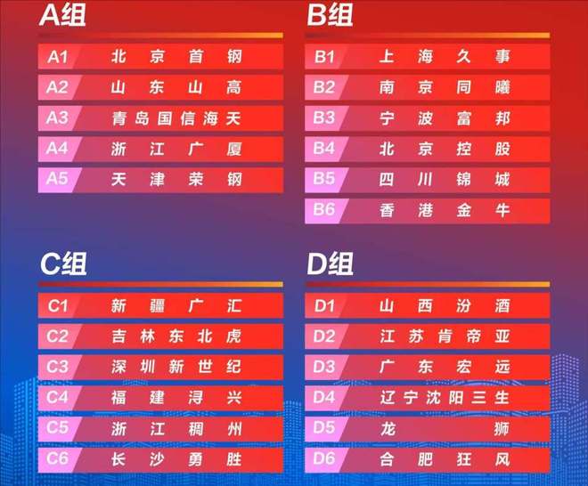 根据抽签的结果,A组的5支球队分别是;北京首钢队、山东高速、青岛队、浙江广厦队和天津队;